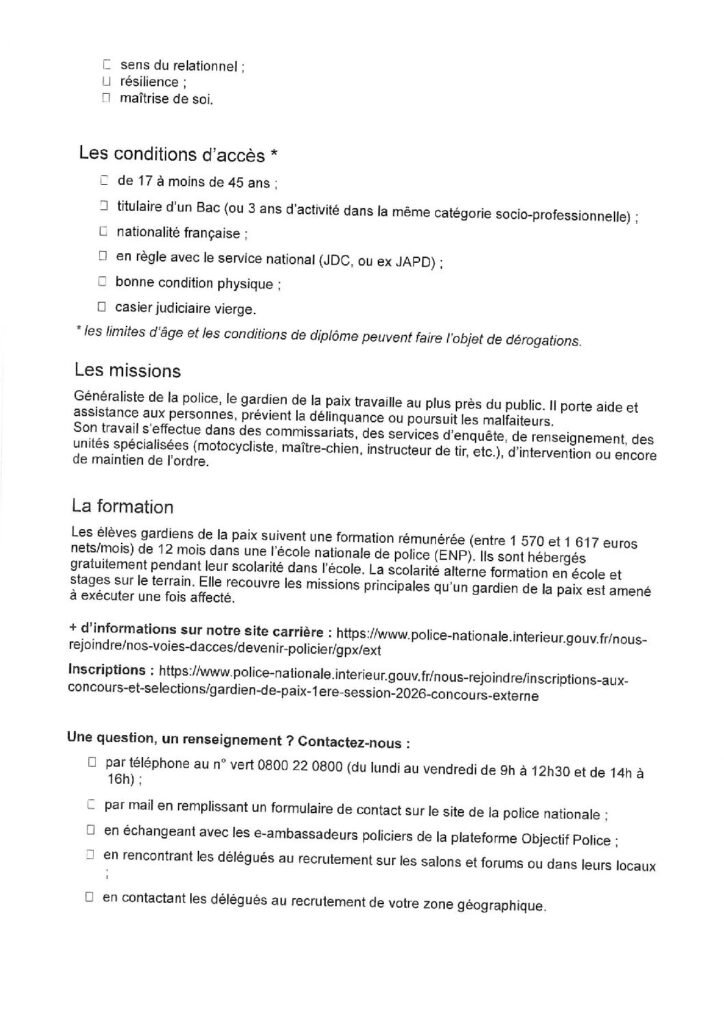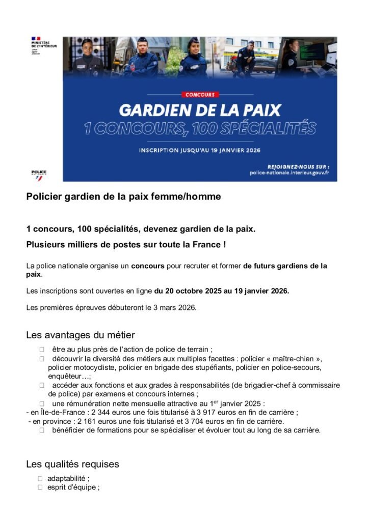 DIFFUSION CAMPAGNE RECRUTEMENT GARDIEN DE LA PAIX 2026